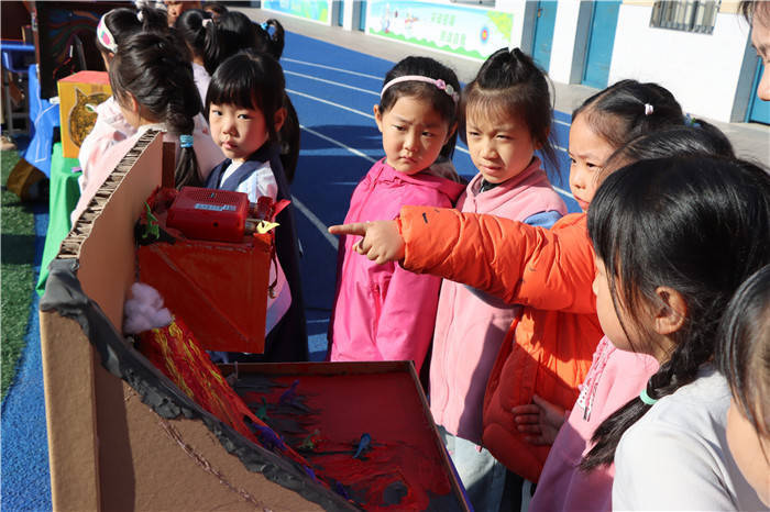 初冬时节,阳光为校园执起一支金色画笔。午饭过后,原本空旷的操场如同展开的画布,逐渐被欢声笑语和忙碌身影填满。搬桌椅、张贴海报、调试展品……各年级学生在老师、家长的协助下,紧张有序地投入布展工作。短短两小时内,一个充满奇幻色彩的“魔法世界”初见雏形:液氮制造的云雾、黏土堆砌的火山、红外感应的积木车、3D打印的逍遥津公园,各种基于机械、编程、声光电等技术的创意作品琳琅满目。